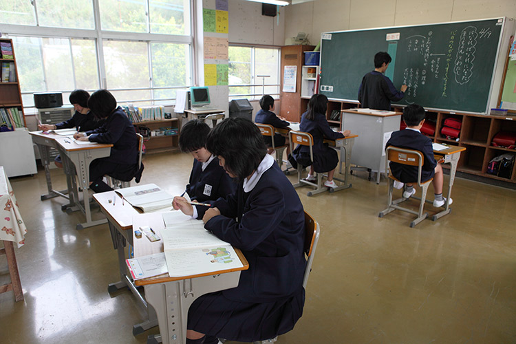 ![]() 【リキシャに興味津々の子供たち】 紺色の制服を着た生徒たちががやがやと集まってくる。リキシャを見つけた子供たちは口々に「これなに?」「わーすげぇ!」などと言っている。ずいぶん裾の長いブレザーを着た男の子がかわいい。きっと将来の成長を見越して買い与えられたのだろう。 8時半に体育館で全校集会が始まる。歌の合唱と保健委員からのお知らせ(今月の目標は「仕事に慣れる」です)のあと、教頭先生から紹介を受けてみんなの前に立つ。 「あのリキシャはバングラデシュっていう国から持ってきました。バングラデシュって聞いたことのある人はいるかな?」 「・・・・」 みんな顔を見合わせている。どうやら誰も聞いたことがないらしい。残念。バングラの知名度はやはり低いようだ。 リキシャとバングラデシュについて簡単に説明する。バングラデシュには日本よりも多くの人が住んでいること。リキシャはタクシーとして使われているということ。1日100円以下の収入で暮らす人がおおぜいいるということ。 「リキシャに乗ってみたい人はいる?」 と聞くと、今度は全員が「はーい!」と手を挙げた。反応が素直で気持ちがいい。 1年生から順番にリキシャに乗せてあげた。雨で少しぬかるんだ校庭をぐるりと一周する。 「怖ーい」「気持ちいいー」「もっと乗りたーい」 どの子も満面の笑みだ。早く乗りたくてうずうずしている男の子たちがリキシャを追いかけて走り出した。 ![]() ![]() 「種子島の子供たちはとても素直だし、感情表現が豊かなんですよ」と松尾校長。「最初は少しシャイなんだけど、慣れればすぐに仲良くなる。よく笑うし、とても元気がいいんです」 何しろ娯楽の少ない島なので、子供たちは豊かな自然と共にのびのびと育つ。伝統の和太鼓をみんなで叩いたり、ウミガメの卵を孵化させて海に帰したりといったここでしかできない体験ができるのもうらやましい限りだ。 生徒たちに将来の夢を訊ねてみると、意外にも「自衛隊」や「警察官」という答えが返ってきた。種子島だけに「宇宙飛行士」という答えがあってもよさそうなものだが、小学生たちはけっこう現実的なのであった。 「どうして自衛隊になりたいの?」 「お金がたくさんもらえるから」 なんだか身も蓋もない理由だが、まぁその通りなのだろう。この男の子の親戚には自衛官が何人かいるらしい。種子島に限らず、これといった産業のない田舎町では「公務員になれば安泰」という志向がことのほか強いようだ。しかし国の借金がかさみ、財政赤字に苦しむ自治体がもっと増えれば、公務員だって安泰とは言えなくなるのではないか。 ![]() 集会が終わった後、授業の様子を見せてもらった。 この学校では生徒数が少ないので、一人の先生が2学年を同時に教える「複式授業」を行っている。1,2年生、3,4年生、5,6年生が同じ教室で机を並べている。教室には黒板が二つあって、先生が3年生に漢字の書き取りを教えているあいだに、4年生は朗読劇の読み合わせをする。先生一人あたりが受け持つのが6,7人だから、これでも十分に目が行き届くのである。 「ここでは学級崩壊なんて起こりませんよ」と松尾校長。「担任の先生もやりやすいんじゃないかな。ほとんどマンツーマンみたいなものだから、生徒がどこまで理解しているかはっきりわかりますからね。落ちこぼれができないんです。こんな小さな学校だけど、共通テストの成績はいい方なんですよ」 子供たちは決してがつがつ勉強しているわけではない。学校が終われば外で思いっきり遊ぶ。塾がないから、塾通いをする子供もいない。少々のんびりしすぎている部分もあるけれど、小学生の頃はそれぐらいでちょうどいいのではないかと校長は言う。 ![]() 【5、6年生の教室。黒板が二つあり、背中合わせに座っている】 ![]() 生徒の親をはじめとする地域の人々が学校を信頼してくれていることも、先生の仕事をやりやすくしている。島のじいちゃんばあちゃんたちが子供だった頃に当たり前だった「先生は偉いもの」という価値観が、今の子供たちにも受け継がれているのだ。 内田樹氏も言っているように、「先生は偉い」というのはフィクションなのだけど、そのフィクションを受け入れることによってはじめて「学び」という装置は起動する。教師が実際に尊敬に値する人物かどうかとは関係なく、子供たちが「師から多くを学べる」と思い込むことが学習意欲を高める鍵になるのだ。 「集落の人はみんな親切ですよ。タケノコ、つわぶき、はまぐり、旬の食べ物をいつも持ってきてくれるんです。『芋は好きか?』と聞かれたんで、『はい』と答えると、唐芋を段ボールに二箱も持ってきてくれたりね。とてもうちでは食べきれないから、それをまた他に配ったりして。物々交換で十分に食べていけるんですよ」 島でののどかな暮らしは、離島に赴任してきた先生たちにとってもかけがえのない豊かな時間になっているようだ。 ![]() 「さようならー」「