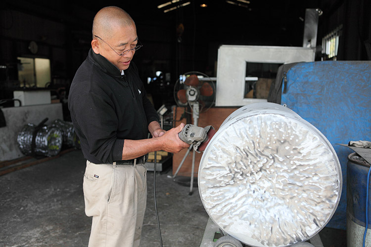 神戸までは65キロほどの道のりだが、比較的平坦なので楽に進めるはずだった。しかし今日は風に邪魔された。久しぶりの本格的な向かい風。風速はときに10mを超える勢いで南東から吹き付け、リキシャの前に分厚い壁として立ち塞がった。 向かい風が強い日は、単調な旅になることが多い。肉体的に疲れてしまうので、好奇心が鈍りがちになってしまうのだ。いつもなら、「この細い道に入れば何か面白いものに出会えそうだ」というセンサーが働く場面でも素通りしてしまう。ひたすら前に進むことだけを考えているので、視野も行動範囲も狭まってしまうのだ。 向かい風の日が辛いのは、他人にこの辛さが理解されないからでもある。よっぽどの強風が吹いていない限り、風向きを気にする人なんてほとんどいないのである。上り坂なら「大変ですなぁ」と共感してもらえる。でも風に関してはみんな眼中の外。 そんな中で出会った町工場のおじさんは「向かい風は辛かろうなぁ」としみじみと言ってくれたので驚いた。 「私は鳩レースをやっとるからようわかるんや。鳩も向かい風の中やと、よう飛ばんのや」 なるほど。鳩の気持ちがわかれば、リキシャ引きの気持ちもわかるということなのですね。おじさんによれば、鳩レースとはいわゆる「伝書鳩」を遠く離れた場所で放ち、巣に戻ってくるまでの速さを競うゲームだという。長距離レースともなると、1000キロも離れた場所で放たれた鳩がおよそ半日で巣に戻ってくるというからすごい。鳩ってそんなに速く飛べるんですね。 ![]() 鳩レースのおじさんの本職は金属加工業である。小さな町工場で大きなアルミの塊(インゴット)を電動やすりで削っている。液晶テレビのパネルに使われる部材の原材料になるのだという。 「昔は従業員25人を抱える工場を経営しとったんや。戦闘機のエンジンとか、深海探査船とかの一点ものの特殊部品を作っとった。NC入れて自動化も進めとったよ。けど10年前に会社が倒産してしもてな。今ではこんなモグラみたいなことをしとるんよ」 経営が傾いた原因は1995年に起こった阪神大震災。地震によって受けたダメージから回復できないまま工場をたたむことになった。最先端の特殊金属加工を得意としていた昔と違って地味な仕事をこなす毎日に、内心忸怩たる思いもあるのだろう。 「景気の波はほんまに激しいからな。リーマンショック以降の落ち込みはひどかったよ。注文が前の年の三分の一になったからな。まぁ今は家族経営やからなんとか持ちこたえてるけど、人を雇ってたらそうはいかん」 「景気は戻ってますか?」 「いや、まだそんな実感はないね。うちらみたいな下請けにはまだまだ厳しいよ。今はひたすら耐える時期やないかな」 町工場のおじさんと別れて以降、休憩を取ったのは今朝オモニに握ってもらったおむすびを食べたときだけだった。4つのおむすびはそれぞれシャケや昆布など違った具が入っていて、とても美味しかった。ありがとう、オモニ。 それ以外はずっとリキシャを漕いでいた。しかし向かい風は収まるどころかますます強くなり、なかなか前に進まなかった。どんなに頑張っても時速8キロ程度しか出ない。これじゃ歩くのと大して変わらないスピードだ。実際、自転車に乗った中学生たちが楽々と追い抜いていく。「頑張ってくださいねー」と声を掛けてくれる子もいるが、笑顔を向けるのが精一杯で、「頑張るよー」と答える余裕すらなかった。 明石に到着したのは4時頃。明石海峡大橋が一望にできる海沿いの国道を走ったのだが、このときがもっとも風が強かった。猛烈といってもいいような突風が吹き荒れ、とめてある自転車はばたばたと倒れるわ、買い物をカートを押しているおばあさんが風圧で押し戻されそうになるわで、とにかくひどかった。 さすがにそんな風の中でリキシャを走らせるのは不可能だったので、ショッピングセンターの建物の陰に入って「風宿り」をした。やれやれ。40分ほどそうしていただろうか。ようやく風が収まってきたので、おそるおそるリキシャを漕ぎはじめた。 そのあと風がぱたりと止み、それどころか風向きが180度変わって追い風になり、今までの苦労が嘘のようにすいすい進み出したわけだが、最初は「そんなうまい話があるもんか」と疑いながら走っていた。ちょっと安心させておいて、また向かい風が吹き始めるんじゃないの。俺は簡単に騙されないよ。 しかし「向かい風の祝福」はそれから神戸に到着するまでずっと続いたのである。まるで自分の願いが天に聞き入れたかのような展開。リキシャのスピードは時速8キロから15キロにまで上がった。おお、神よ! そんなわけで7時半には何とか三宮にたどり着くことができたのだった。リキシャというのは本当に風次第の乗り物なのである。 *********************************************** 本日の走行距離:67.3km (総計:2559.7km) 本日の「5円タクシー」の収益:1045円 (総計:38740円) *********************************************